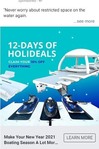 We used marketing images and in our ad copy, encouraging users to grab our holiday offer of 10% off. Using Facebook Conversion Ads, the Learn More call to action sent the user to the client’s website, generating conversions.