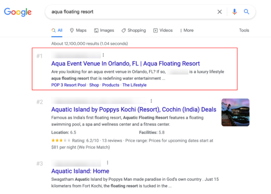 REAL WORLD RESULTS (ON GOOGLE SERP):